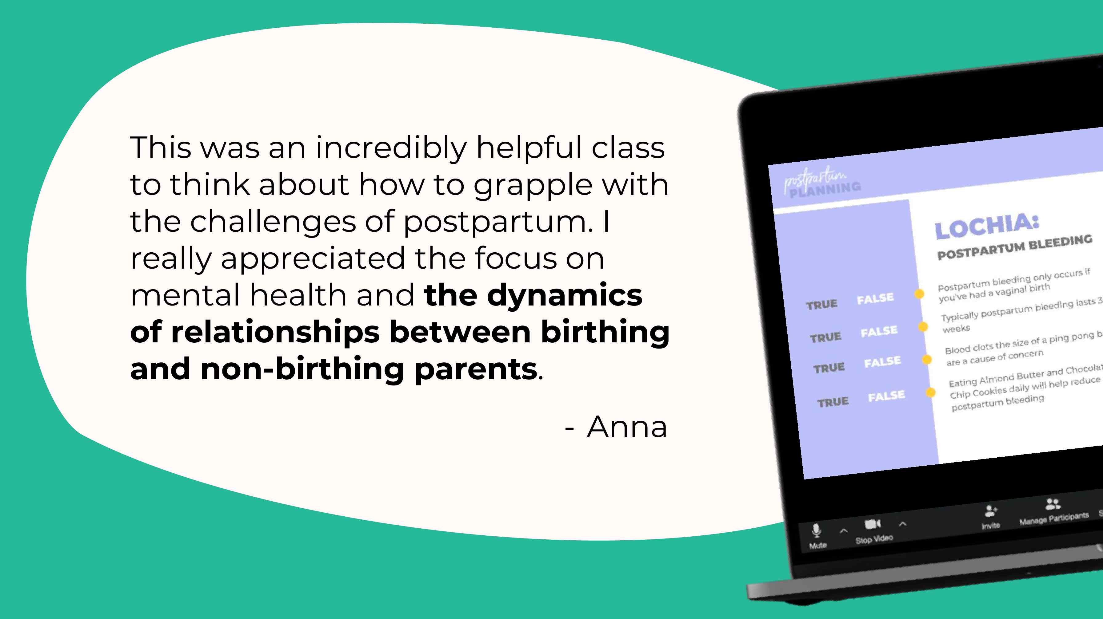 At this time, our Postpartum Class is only offered virtually.